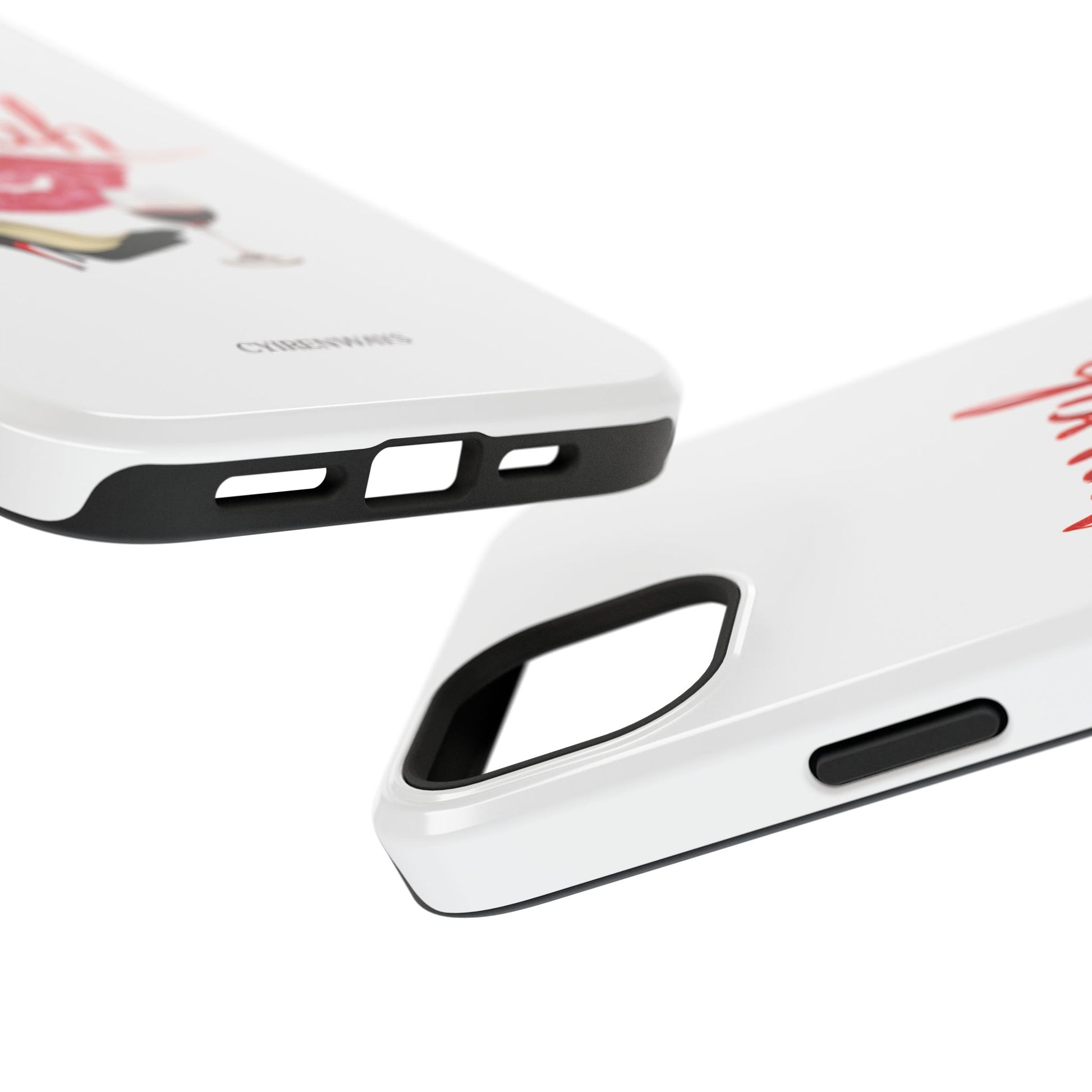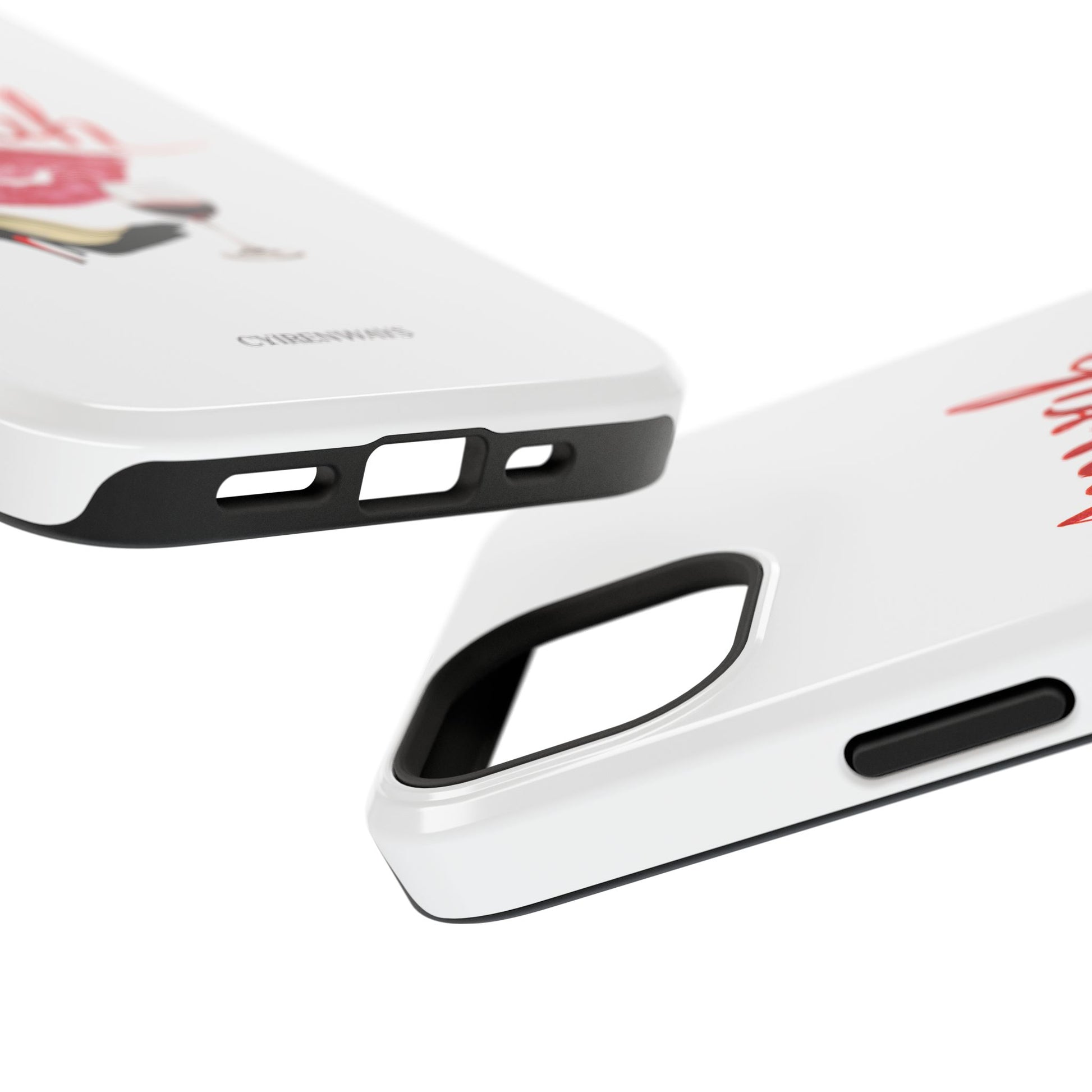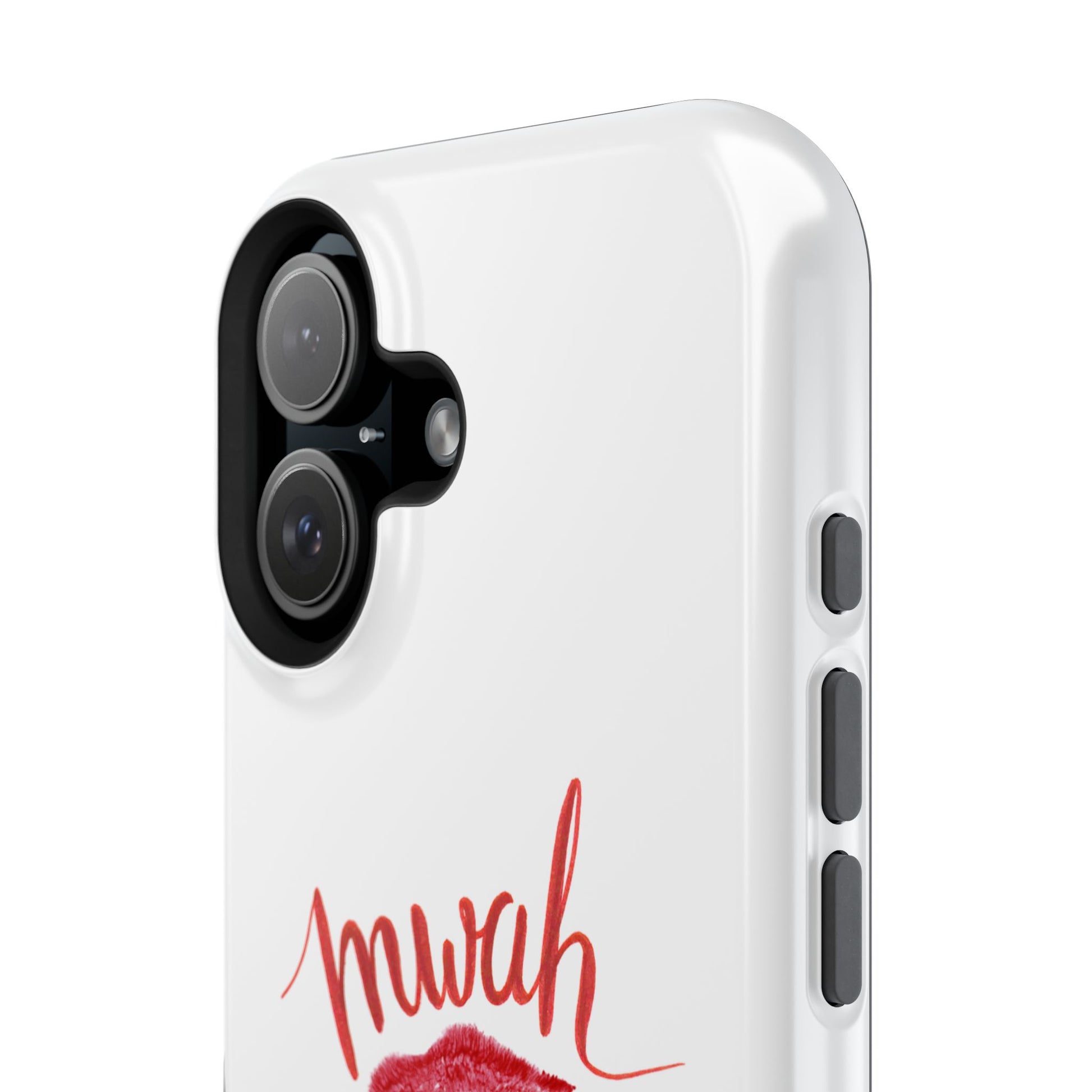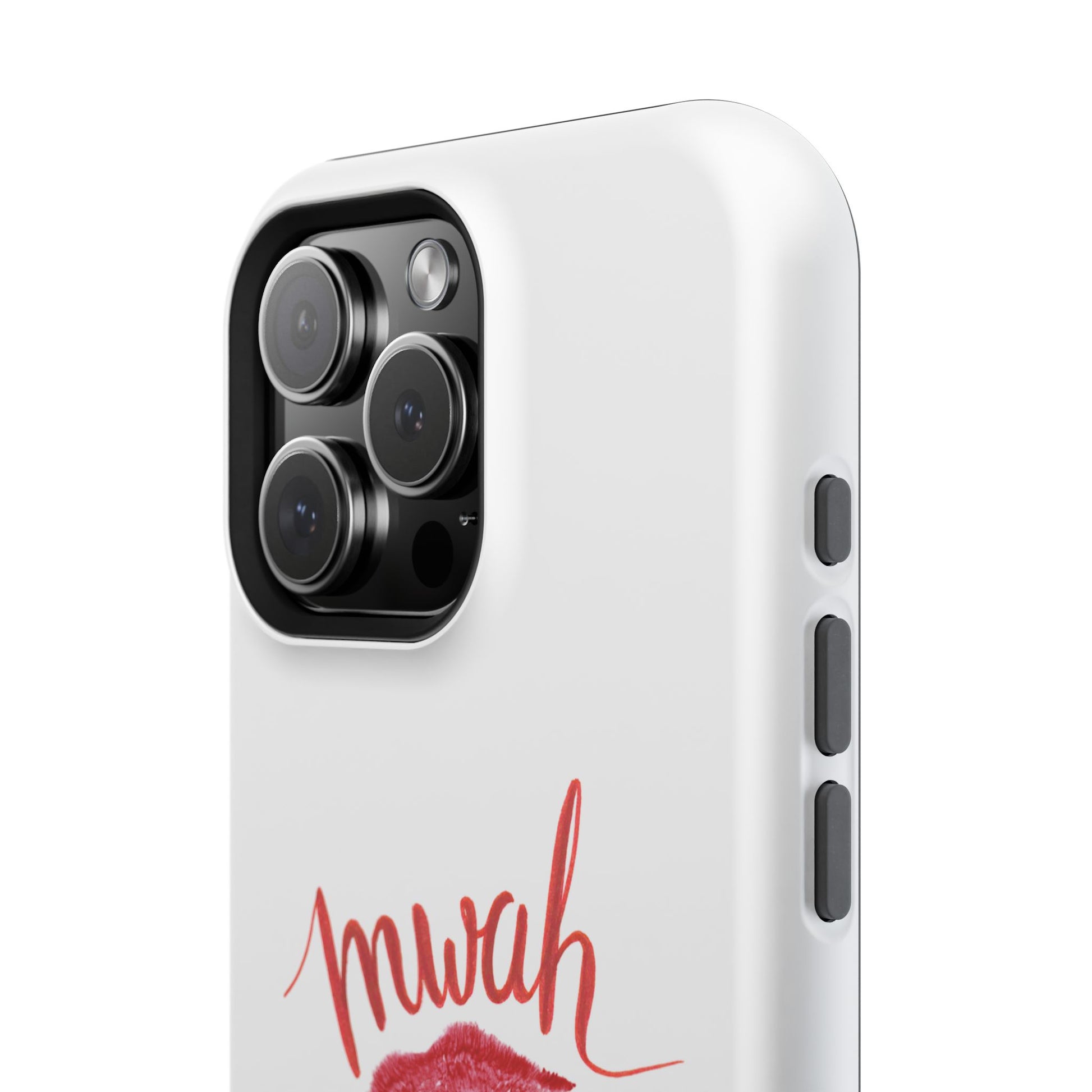 A bold, playful art for your everyday case protection. The soft white background showcases a lipstick kiss, a stiletto, and a glass of red wine beneath a hand-lettered "mwah" — a little wink of glamour for anyone who moves through life with style and a sense of fun. Choose from a glossy or matte finish, so it looks as polished as the person carrying it. It slips easily into a bag, supports wireless charging, and keeps your device safe from scratches and minor bumps while broadcasting a cheeky, confident vibe.I