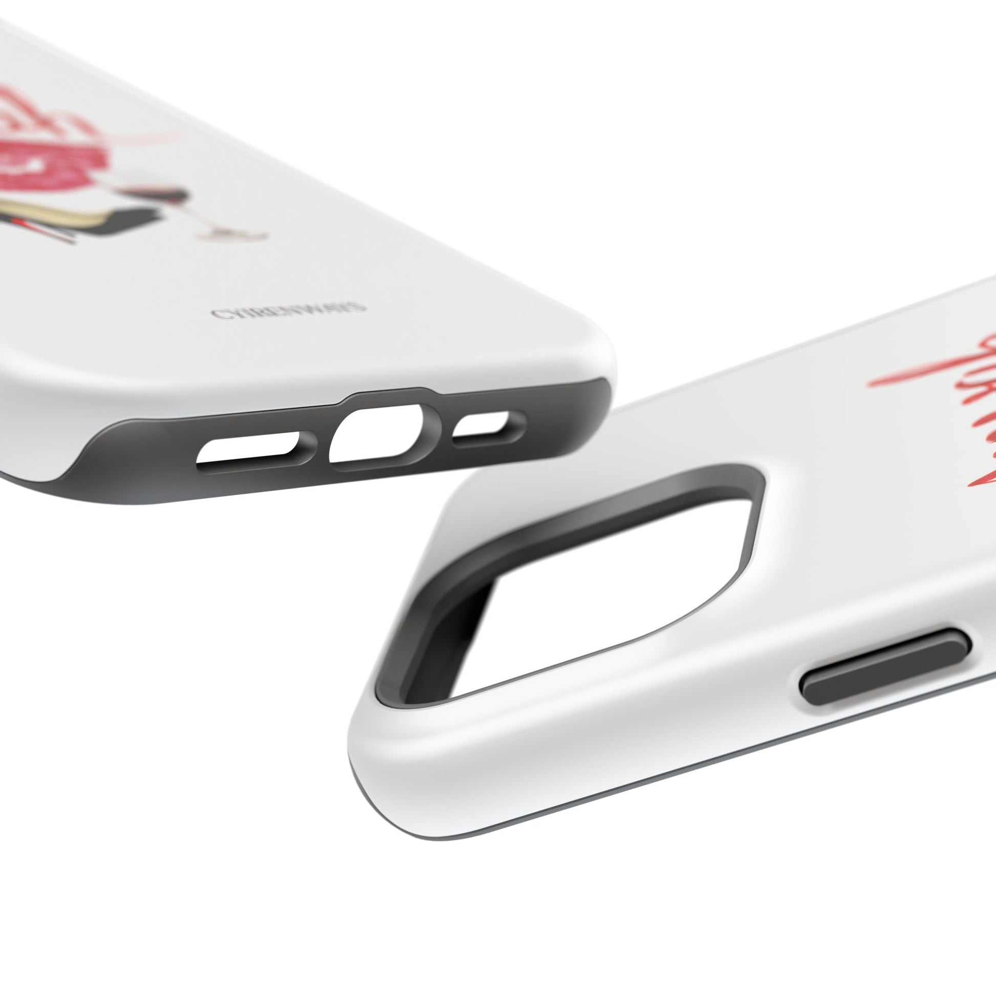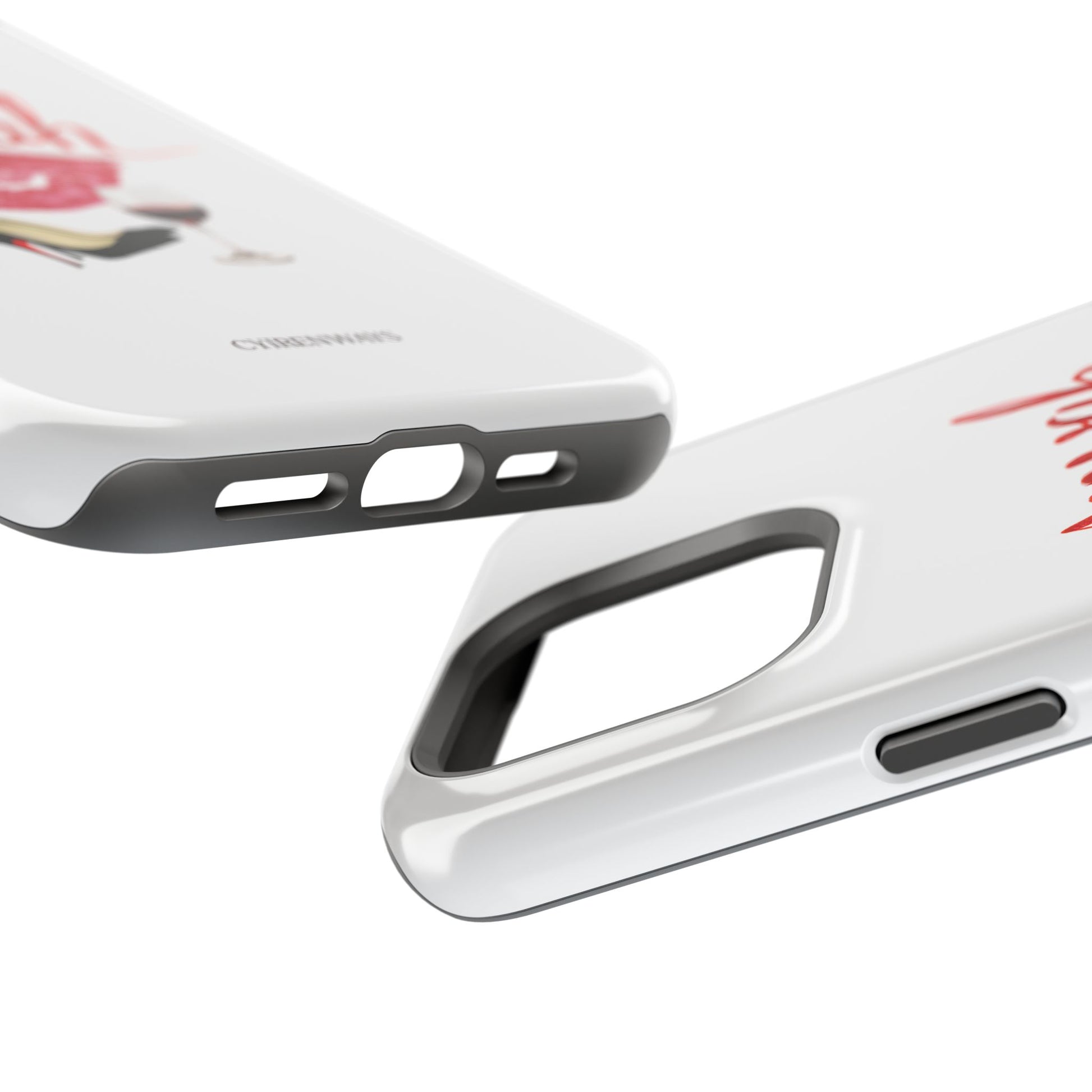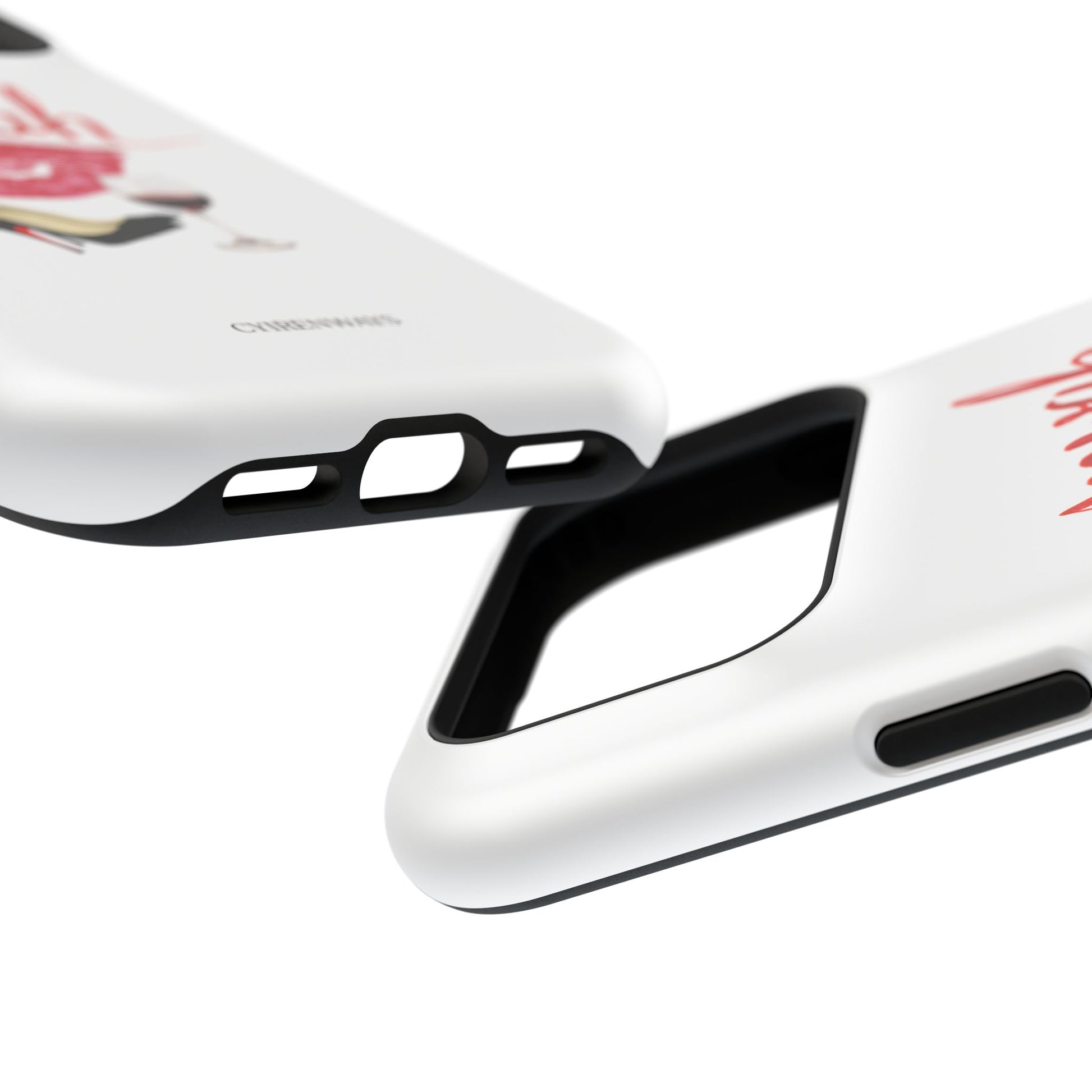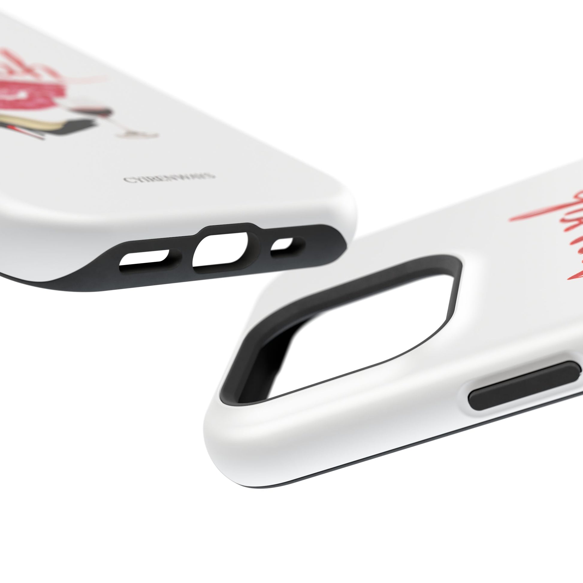 A bold, playful art for your everyday case protection. The soft white background showcases a lipstick kiss, a stiletto, and a glass of red wine beneath a hand-lettered "mwah" — a little wink of glamour for anyone who moves through life with style and a sense of fun. Choose from a glossy or matte finish, so it looks as polished as the person carrying it. It slips easily into a bag, supports wireless charging, and keeps your device safe from scratches and minor bumps while broadcasting a cheeky, confident vibe.I